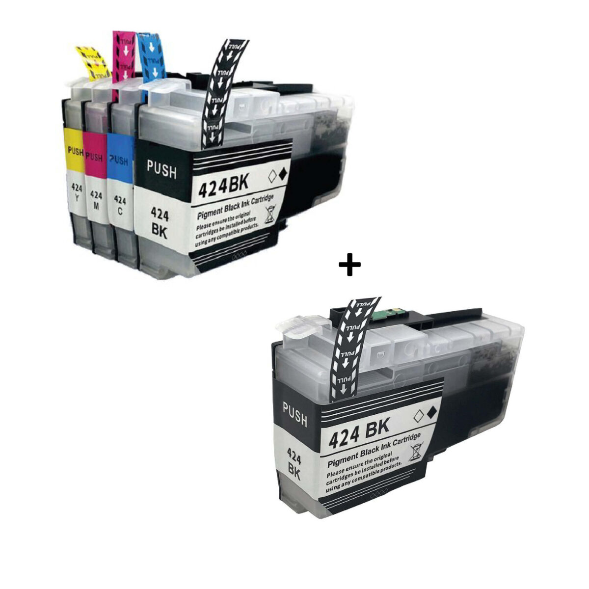 סט 4 ראשי דיו תואמים + שחור נוסף brother lc424bk/c/y/m